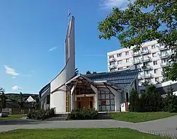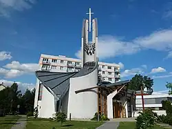 The first stone church was laid in 1995 and was consecrated in 2003 by Pope John Paul II. However, construction did not begin until the spring of 2007, as permission to build was not received until January 2007. The project architect was Ladislav Banhegyi. The roof was built in 2008. The structure was consecrated on June 13, 2009, by Archbishop Stanislav Zvolenský, and designated the seat of the military ordinariate the same year.[3]