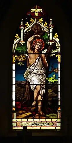Dedicated to third-century martyr Saint Sebastian, the parish was established in 1852 from territory that had been part of St. Rose and St. John the Baptist parishes. By the end of the following year, its members constructed a church building that would serve the parish for twenty-five years;[2] a frame structure, it was built under the direction of an African American man named Coratus.[3] This structure served the parish until a replacement brick church was completed in October 1879; a rectangle measuring 45 feet (14 m) by 85 feet (26 m), it cost $4,000 to build and was considered by some to be the finest church in Mercer County.[2] Anton DeCurtins was instrumental in this building's history: he designed it, added its pipe organ, and expanded it in 1894.[3]