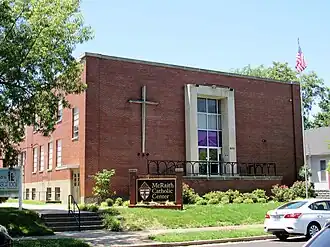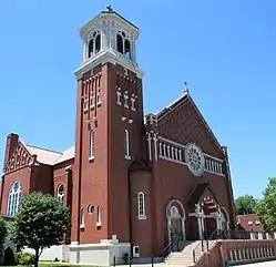 In the early years of Daviess County priests would celebrate Mass in the homes of the settlers. The first church dedicated to St. Stephen in Owensboro was built in 1839 and the Rev. John C. Wathen was appointed the parish's first pastor.[1] As the town and parish continued to grow a larger church was needed and so a second church was built on the same site as the first in 1856. The present church was built on Locust Street between 1924 and 1926.