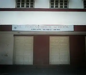 St. Teresa's High School (STHS) is a government aided, private co-educational day school, located at Charni Road in Mumbai, India. The institution was founded in 1843, and present day school building was established in 1924.