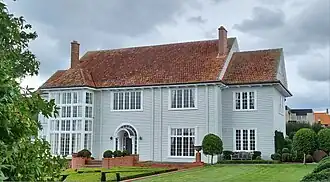 St Ann's is an English country cottage designed in the Arts and Crafts style, with some Georgian revival influence, constructed from timber with a masonry foundation. It originally had 15 rooms, with five bedrooms on the first floor. It had a grand hallway, casement windows, and a Marseille tiled roof. The tall brick chimneys have an art deco-like motif. The entrance to the garden is reminiscent of the lych-gate of a rural church. An engine house and laundry were located south of the home.[1][2] St Ann's sits amongst landscaped, parterre, and terraced gardens on a 3,062 m2 (3,662 sq yd) section. The façade faces towards the Waitematā Harbour instead of towards the street.[2]