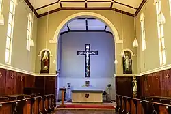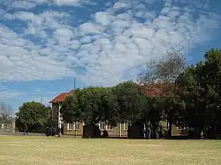 By the 1940s, the school's environs in the Germiston CBD were undergoing rapid industrialisation, concurrent with a general shift from north to south of much of Germiston's population, and in 1948 St Catherine's School relocated to the then newly developed suburb of Parkhill Gardens. Here there was also more space for sporting facilities.[2] The new school buildings were designed in a toned-down Romanesque Revival style, influenced by the late-nineteenth and early-twentieth century Arts and Crafts Movement, by the Irish Catholic architect Brendan Joseph Clinch, an associate of Herbert Baker.[3][4]