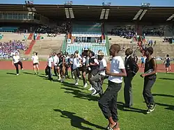 St Catherine's senior school athletes warm up ahead of an inter-school competition.
