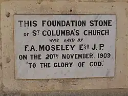 Construction began on 20 November 1909, when the first stone was laid by F. A. Moseley.