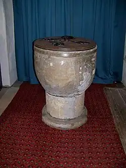 The church is built of sandstone, the nave and tower have stone-flagged roofs, and the roofs of the chancel and porch are in pantile. The church consists of a nave, a south porch, a north vestry, a chancel and a west tower. The tower has two stages, diagonal buttresses, a two-light west window with a pointed arch, two-light bell openings, an embattled parapet and a saddleback roof. Inside, there is a 13th-century font, a late 17th-century octagonal pulpit, 17th-century altar rails, and a reused 17th-century pew for the vicar. The stained glass in the east window was installed in 1925.[2][3]