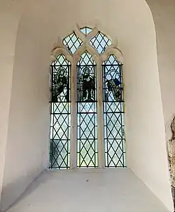 The small fragments of glass depicting figures now installed in the north-west window are 15th century and used to be in the East Window of the church until 1951 when the present East Window was put in as a war memorial, being dedicated by the Rt. Rev. Maurice Harland, Bishop of Lincoln.[7] The West Window dates to the late 13th century with Y-tracery. Situated above this is a 16th-century embossed terracotta tile. The north wall contains two 14th century windows with three lights and a recut late 13th century window with intersecting tracery. A blocked doorway can also be seen.[3]