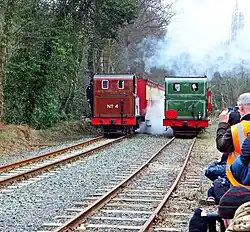For many years trains heading to both Peel and Ramsey were scheduled to depart within minutes of each other, the main lines running parallel for some distance to the west of the level crossing; despite the official timings, it was often the case that one would be held back slightly so that the two could unofficially "race" out of the station to their respective destinations. Inevitably, it was the westbound train to Peel which "won" the race, the track being on a downward gradient all the way to the western terminus. This is often statically recreated during modern events on a spur known as "Peel East" just west of Douglas Station during the annual Manx Heritage Transport Festival.