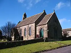 The church is built of gritstone with a stone slate roof, and consists of a nave, a south porch and a chancel. On the west gable is a gabled bellcote, and the windows have pointed heads, those in the porch and chancel with hood moulds.[1][2]