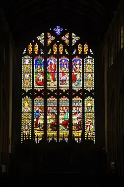 The stained glass window at the east end of the nave was created by Thomas Willement in 1862.
