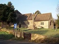 The church building uses uncoursed limestone rubble with ashlar dressings and was originally constructed in the early Norman period (c. 1100CE).[2] The roof uses stone tiles. The tower was originally constructed in the 13th century. The tower and south wall were rebuilt following their partial destruction during the English Civil War, c1670.[3] Around 1850, a reproduction Norman chancel arch was constructed.[3] In 1913, the church was restored by William Weir and Ernest Gimson.[4] The restoration included an external drainage system which still functions. The east and south walls show clear signs of the 1913 repairs and the north wall shows remains of a former heating house.