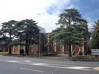 St Luke's Anglican Church is a substantial blue stone building prominently located on the corner of Ruthven and Herries Streets Toowoomba. The building is surrounded by large established trees, including several large conifers on the Herries Streets side.[1]