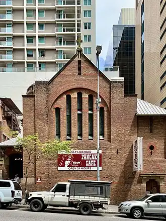 St Luke's Church of England, Brisbane is a heritage-listed former church and now restaurant at 18 Charlotte Street, Brisbane City, City of Brisbane, Queensland, Australia. It was designed by John Smith Murdoch and built in by John Steward & Co. It is also known as Pancake Manor. It was added to the Queensland Heritage Register on 21 October 1992.[1]
