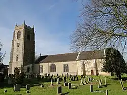 The village war memorial is located within the churchyard; it is Grade II listed. It comprises a stone, Latin cross fleurée with a tall shaft and moulded foot.[4] There is a roll of honour inside the church.[5]