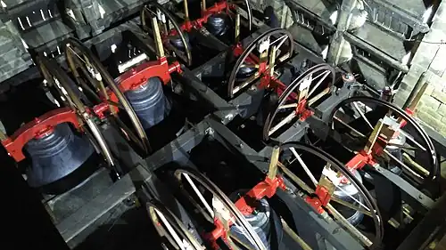 In 2012, as part of the launch of the project to restore the tower, the opportunity was taken to fundraise for a full restoration of the bells, as the condition of the ring was deteriorating. An £89,000 restoration project was launched to restore the bells and following three years of fundraising, the bells were rung for the last time on Easter Sunday, 2015. The original plan was to recast the lightest six bells, but two of the bells were utilised by the Keltek Trust and were sent to Butterton, Staffordshire, as part of a restoration of their own ring.[12][13][26][27][28]
