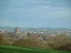 St Mary's Church is the parish church of the town of Mirfield in West Yorkshire, England. The current building is a large Gothic Revival structure designed by Sir George Gilbert Scott, replacing an older structure, the tower of which still survives a short distance from the present building. These structures form Mirfield's most prominent landmark and both are listed for preservation by Historic England, the old church tower as Grade II[1] and the present building as Grade II*.[2]
