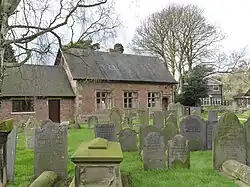 The south-west of the churchyard included an access to St. Mary's Grammar School until the churchyard was remodelled in 1837, with the entrance moved to the southern side because of vandalism to the windows and gravestones.[5]: 17  The school was first endowed by Bishop Sherbourne in 1520 and rebuilt by Sir Edward Mosley, 2nd Baronet in 1640.[5]: 17  It closed as a school in 1909 when a council school was opened in the village, and is now used by various village organisations.[5]: 17 : 22  The former school was granted protection as a grade II listed building on 26 March 1986.[11] The churchyard as a whole is listed as a scheduled monument.[5]: 64