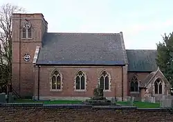 A church, dedicated to St Bartholomew, is believed to have been present in the village since at least 1220,[4] however the church was rebuilt in 1736 and dedicated to St Mary.[4][5] The current west tower has been dated back to this 18th century rebuild.[4] The church experienced further rebuilding in the 19th century, including the nave and chancel, which had a Gothic influence.[4] The church has been noted for its unusual use of red brick since rubblestone is more commonly used among churches in the locality.[5] The heritage listing notes that the church has several stained glass windows.[6]