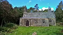 The moorland area long fell within the parish of All Saints' Church, Helmsley, but is distant from the church, and by the late 19th century there were 200 residents in the area who were rarely able to attend services.[1] The church was designed by George Gilbert Scott Jr. with assistance from Temple Moore, and was completed in 1882.[2] Nikolaus Pevsner claims that Moore "obviously enjoyed this job thoroughly, and his pleasure is infectious".[3] In the early years, clergy would ride out in an evening and sleep in the church in order to reach the location early enough for a morning service. John Betjeman wrote a poem, "Perp. Revival i' the North", about the church.[1] It was grade II* listed in 1985.[2]