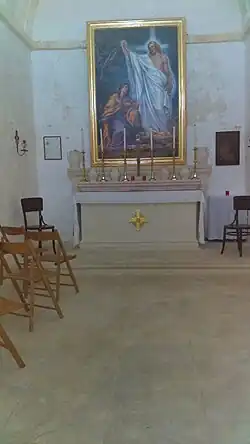 The church has an altar built of Maltese limestone. The altarpiece is The Risen Christ by Paul Camilleri Cauchi, depicting Jesus forgiving a penitent Mary Magdalene after his resurrection.[1]