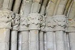 The nave is divided on either side into five arcades. They show the transition from Norman architecture to the Early English Style. The piers are Norman in character with foliated capitals from which spring pointed arches. The four clerestory windows on either side of the nave are examples of Early English lancets, whilst the two long lancets of the west wall are part of the nineteenth-century restoration.[4]