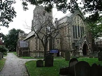 During the incumbency of Canon Matthew Woodward, vicar from 1851 to 1898, the church was largely rebuilt.[4] The nave and north aisle were rebuilt by R. C. Hussey in the 1850s. The west window and porch were created by Stallwood in 1872. The south chancel aisle and transept were rebuilt in 1869, the south aisle in 1974.[1] The three altar windows, and the windows in the Lady Chapel, were created by C. E. Kempe.[7]