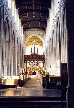 St Mary the Virgin is the parish church of Saffron Walden, Essex. It is the largest non-cathedral church in Essex with an overall length of 183 feet (56 m) and a spire 193 feet (59 m) high, which is the tallest in Essex. It was designated as a Grade I listed building in 1951.[1][2]