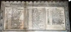 The first parson on a list of rectors that starts in the reign of Richard I in the 12th century is John, Parson of Westleigh (1189–1199) but it is possible there was a church in Leigh at the time of the Norman Conquest.[4]