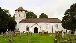 The earliest dedication of a church on the site, some 5km to the north of Brecon, was to St Maelog and there is some remaining evidence of 13th century construction.[1] The present church is mainly of the 15th century.[2] The church escaped the heavy restorations generally undertaken in the Victorian era, when the western end of the church was partitioned off and served as the village school.[3] It was sensitively restored in the early 20th century, probably by W. D. Caröe.[a][2] A further renovation took place in 1959.[4]