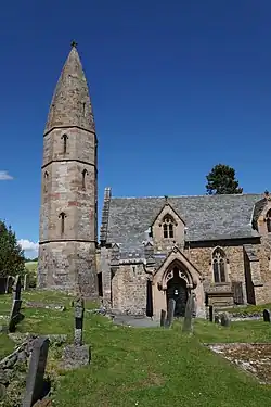 St Michael the Archangel is a Grade I listed church in Llanyblodwel, in Shropshire, England. It has a spire of unusual shape and was designed in 1847–1856 by the vicar, John Parker.