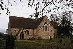 St Oswald's is constructed in rubble stone with tiled roofs. Its plan is cruciform, consisting of a two-bay nave with a south porch, north and south transepts, and a two-bay chancel.[2] Over the crossing is a flèche.[4] Most of the windows are lancet windows. On the gables of the chancel, nave and transepts are cross finials.[2]