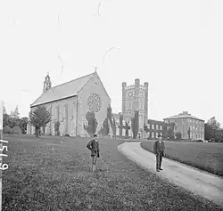 Founded in 1811 by Most Rev. Patrick Ryan, Bishop of Ferns, the college has progressed from a Roman Catholic Seminary in Michael Street, Wexford to the present buildings.[3] In 1818, the large house at Summerhill was purchased and Bishop Ryan blessed the foundation stone of an extension to be constructed to the rear of the house. In 1819, Bishop James Keating opened the new college and the President, staff and student body of Michael Street took up residence. Rev. Miles Murphy was the first president, he went on to become a Bishop. Expansion occurred for years afterwards and the impressive façade with its distinctive tower and the chapel designed by Augustus Welby Pugin were constructed. In 1855 the college became affiliated to the Catholic University of Ireland, in 1858 a theology course was offered to students. Up until 1897 students went on to finish their Theology and Philosophy courses at St Patrick's College, Maynooth, (or another seminary), but from 1901 students completed their studies in St. Peter's and were ordained. Over 160 priests ordained for American dioceses were trained in St. Peter's.[4]