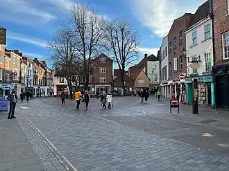 ![]() The range of buildings is in view at the far end in this 2023 view of King's Square. Tullivers, the white building, is at 1–2 Colliergate | |