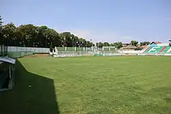 The stadium was opened in 1933.[1] Right after the founding of Železničar Inđija, the predecessor of FK Inđija, the pitch was closed off with a fence and covered wooden seats were built. The capacity was about 600 seats. A Changeroom as part of the stadium wasn't built until 1962. Until then the Changeroom was in a Sport cafe across the stadium. The wooden seats were replaced with plastic seats in 1970. In 2006 the stadium was renovated. The old removable stand was replaced with a new, modern stand equipped with plastic seats.