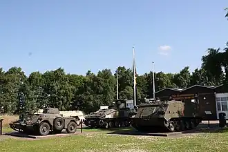 The museum's other outdoor exhibits include weapons (Combat Anti-Tank Gun) and Armoured Fighting Vehicles used or captured by the Regiment (FV432 Mk1, FV103 Spartan, Iraqi MTLB, Universal Carrier (Bren Gun) T16 and Ferret armoured car).[14]