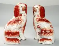 Pair of spaniels, 1830–50; these have gold lustreware