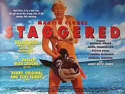Staggered is a 1994 British romantic comedy film starring and directed by Martin Clunes in his directorial debut. It follows the misfortune of Neil (Clunes), a bridegroom trying to get back to his intended bride after a stag night.