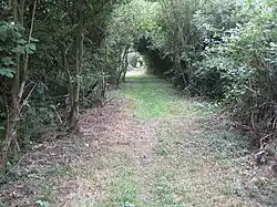 South of Colnbrook, the line is closed, the track has been lifted and part of the trackbed is occupied by the M25.[3] The line ran across Staines Moor before climbing at 1 in 133 to pass over the Wraysbury River and the Staines–Windsor line.[5] The station building for the southern terminus, Staines West, still stands to the northwest of Staines-upon-Thames town centre and is a Grade II-listed building.[6][7]