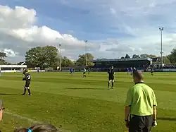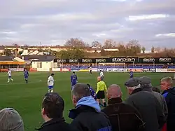 Stangmore Park has often been used as a nominated home ground for teams promoted into the IFA Premiership if their own grounds fail to meet Irish Football Association criteria. In 2012, Ballinamallard United originally nominated Stangmore Park as their home ground after being promoted from the IFA Championship if construction at their Ferney Park ground could not be completed in time for the start of the season.[3] In 2013, Warrenpoint Town also nominated Stangmore Park as their home ground for the first few months of the 2013–14 season as their own home ground, Milltown, was not up to Premiership standard after the IFA refused permission for them to move to The Showgrounds, Newry.[4] During this period, the ground was brought up to Premiership standard. Warrenpoint's final home game at the ground was a 2–1 win over Coleraine on 30 November 2013, after which they moved back to Milltown.