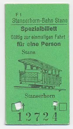 5. ^ Stanserhorn-Bahn. "Oldtimer Funicular Train". Retrieved 3 October 2014.