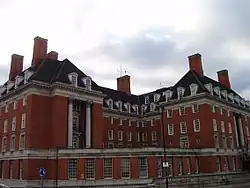 During the war the hotel and its land was purchased with funds raised from a public appeal by the Auctioneers and Estate Agents Institute, with the freehold being valued at around £25,000. The site was then donated to Queen Mary in support of her plans to establish a home for paralysed and permanently disabled soldiers. The hotel banqueting hall and ballroom were temporarily used to house disabled soldiers, but the site was found to be unsuitable for their specialised needs and the hotel buildings were demolished in 1919 and rebuilt as the Star and Garter Home. The new building was dedicated in 1924 as the Women of the Empire's Memorial of the Great War.[59]