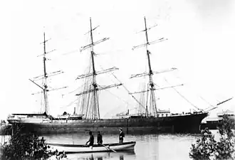 J.J. Smith & Co. re-registered the Star of Bengal in the United States,[note 3] and in 1898, the 25-year-old ship underwent a major overhaul. To make the ship's operations more cost-effective,[40] her mizzen-mast was re-rigged from square to fore-and-aft, and the Star of Bengal turned from a full-rigged ship to a barque.[10][11] She got new decks, but the number of bulkheads in service decreased from three to one.[10] In 1904, a donkey boiler was installed on the ship to assist the crew with raising sails.[41][42]