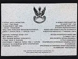 Memorial plaque to Polish POWs held by the Soviets in the local POW camp and then murdered in the Katyn massacre