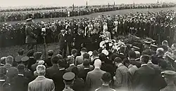 Pundzevičius actively participated in the underground activities of the Lithuanian Activist Front (LAF).[1][2] Following the start of the Soviet–German War in 1941, he was one of the organizers and managers of the June Uprising in Lithuania.[1][2][9] One 24 June 1941, the National Defense Council was formed, which included div. gen. Stasys Pundzevičius, div. gen. Mikas Rėklaitis, Col. Juozas Vėbra, Kaunas Military Commandant Col. Jurgis Bobelis and Kaunas Burgomaster Kazimieras Palčiauskas.[10] The members of the council were soldiers who held high positions in the army of independent Lithuania.[10] On the same 24 June 1941, Pundzevičius was appointed Chief of the Lithuanian Armed Forces by the Provisional Government of Lithuania.[1][2] He together with Stasys Raštikis advised Algirdas Klimaitis to disappear from Kaunas and not to participate in pogrom, however Klimaitis tried to excuse that he is being forced and was threatened by the German Security Police that if he refused to do so he would face punishment – execution by firing squad.[11] On 15 September 1941, he together with other representatives of the LAF (e.g. Vladas Nagevičius) signed a memorandum Apie Lietuvos būklę pradėjus veikti vokiečių civilinei valdžiai Lietuvoje (English: About the state of Lithuania after the beginning of the German civilian government in Lithuania).[1] Following it, he worked as a teacher in Kaunas until 1944.[1] During the German occupation of Lithuania, Pundzevičius was an active member of the Lithuanian anti-Nazi resistance and contributed to preventing the Germans from establishing a Lithuanian Legion of the Waffen-SS.[7]