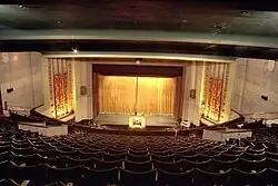 In front of the centre of the stage is a fully illuminated three manual 6 rank Compton organ which is able to rise from the orchestra pit on a lift. It can be seen being played in a BBC TV production of Dennis Potter's Lipstick on Your Collar.[15]