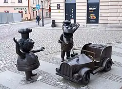 The statues of Wawel Dragon and Bartolini Bartholomew (Polish: Pomnik Smoka Wawelskiego i Bartoliniego Bartłomieja) is a monument in Bielsko-Biała, Poland, located at Jedynastego Listopada Street next to the Polish Armed Forces Square. It was designed by Lidia Sztwiertnia and unveiled on 3 December 2020. It consists of three bronze sculptures, including two main characters from animated series The Abduction of Balthazar Sponge, Wawel Dragon and Bartolini Bartholomew, as well as their car.