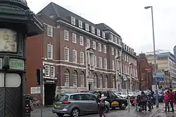 The 1933 station itself, in neo-Georgian style[1] is not a listed building, but the adjacent, late-nineteenth century cell block on the corner of Coleridge Passage was given Grade II protection on 8 July 1982 for its special architectural interest: the three-story building has a brick and terra cotta facade with many ornaments, and it has a slate roof.[5] The station sits in Birmingham City Council's Steelhouse Lane conservation area, which was designated in October 1993.[1] A tunnel links the cell block to the courts.[2]