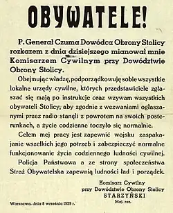 - ^ "The Man who Governed Warsaw After Starzynki's Arrest" (in Polish). Gazeta Wyborcza. September 2014.
