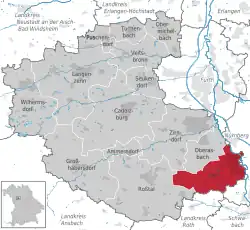 Fürth (district)BavariaAnsbach (district)Roth (district)SchwabachErlangenNeustadt (Aisch)-Bad WindsheimErlangen-HöchstadtFürthNurembergObermichelbachTuchenbachPuschendorfVeitsbronnSeukendorfWilhermsdorfLangenzennCadolzburgGroßhabersdorfAmmerndorfRoßtalZirndorfOberasbachStein