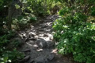 Stone-covered hiking trail.