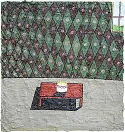 Through an examination of psychoanalysis and psychometry of art, Newton has evolved a series of paintings related to primitive manic states; isolation; disassociation; loss; fear; loneliness and supplication.[4] Art critic Mel Gooding described Newton's paintings as a “psycho- conceptual project”.[5] His work has been exhibited across the UK in exhibitions which include: ‘Stephen Newton: Abstract Realisms’ Art Bermondsey Project Space, London (2016), ‘Stephen Newton Retrospective’ Abbey Walk Gallery, Grimsby (2015), ‘Etchings 1997-2000’ Jesmond Dene House, Newcastle (2005), ‘Etchings and Paintings 1997-2000’ Cooper Gallery, Duncan of Jordanstone College of Art and Design, University of Dundee (2001), ‘Stephen Newton: Solo Show’, Stanley Picker Gallery, Kingston University, London (1998), ‘Contemporary British Painting’ Huddersfield Art Gallery (2014), ‘@paintbritain’, Ipswich Art Gallery and Museum (2014) and ‘Images of Working Class Life’, Viking Gallery, Jarrow (1998). A number of art museums have acquired work by Newton, including Abbot Hall Art Gallery, Madison Museum of Fine Art, Rugby Art Gallery and Museum and Swindon Art Gallery[6]